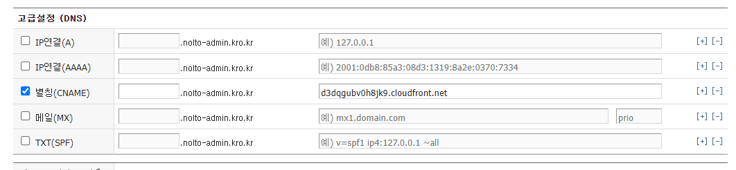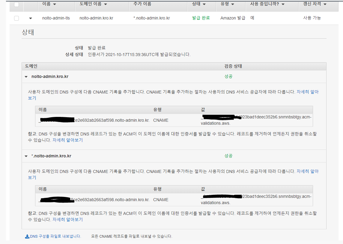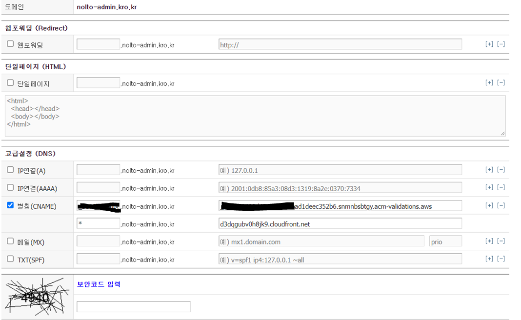 ssl 인증서 등록하는 과정에서 DNS CNAME 등록하는 과정이 있어 - ssl 인증하는 거 txt로 했던 거 기억나지? - 그런거 처럼 cname으로 코드 인증해서 ssl 인증서 받더라고 -