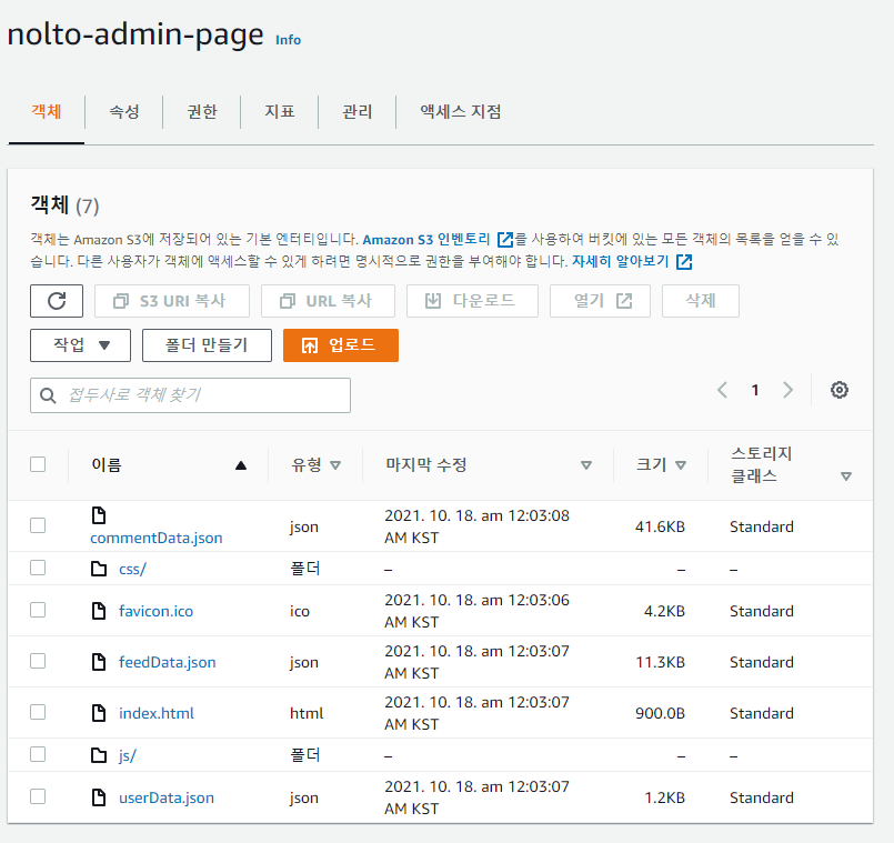 퍼블릭 액세스가 금지된 s3 버킷 하나 만들고, dist 폴더의 내용물 업로드 -