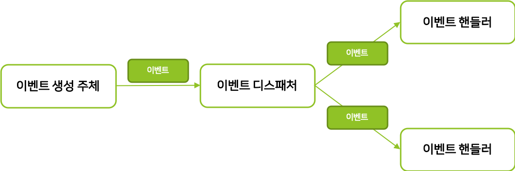 - 이벤트 생성 주체 <--- 이벤트 디스패처 ---> 이벤트 핸들러- 이벤트의 구성 - 과거의 것을 표현하기에 네이밍은 과거 시제로 - 이벤트 핸들러가 작업을 수행하는데 필요한 최소한의 데이터를 담을 것