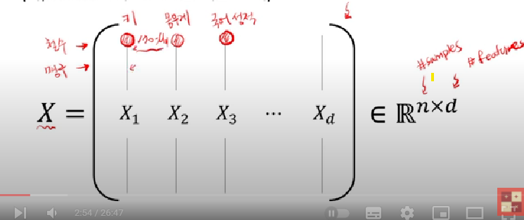 - 열의 평균값은 0이라고 가정. feature들의 평균값은 빼준 상태