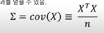- 선형 변환! => 공분산 행렬은 feature 쌍이 서로 함께 변하는 정도를 의미