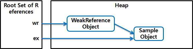 - weak reference는 참조 대상인 객체를 캡슐화한 WeakReference 객체를 생성 => GC의 특별 취급 대상