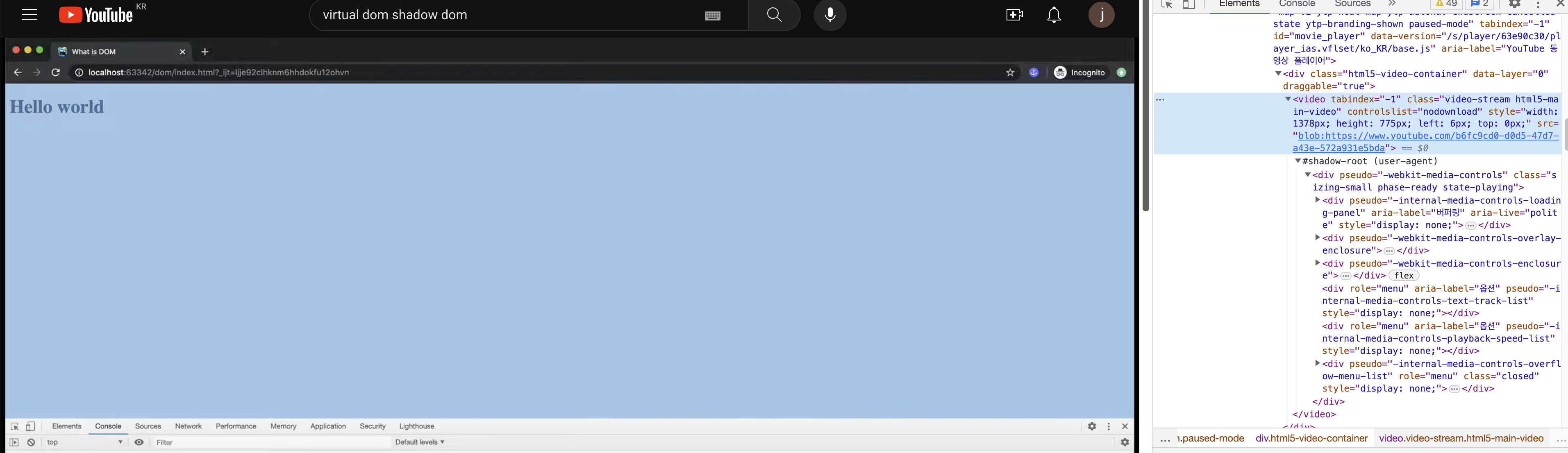 - 크롬 > Settings > Preferences > Elements > Show user agent shadow DOM