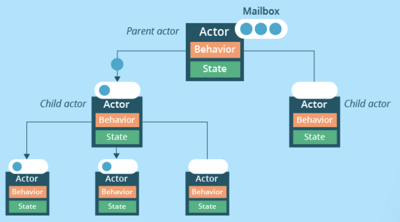 - 각 액터는 독립적으로 받은 메시지 수행