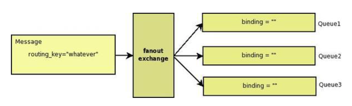- Fanout: Exchange에 바인딩된 모든 Queue에 메시지 전달. 1:N. 브로드캐스트 용도