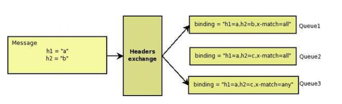 - Headers: 라우팅 키 대신 메시지 헤더에 여러 속성들을 더해 속성들이 매칭되는 큐에 메시지 전달
