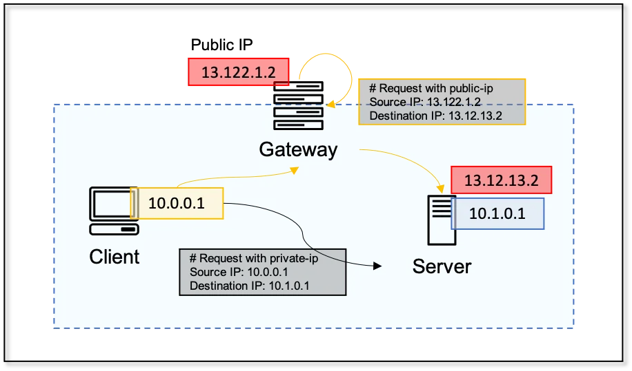 - 사설 네트워크 내 인스턴스에 공인 IP로 요청을 보내면, 게이트웨이를 거쳐 요청됨으로 요청이 게이트웨이에서 인입된 것으로 보일 것