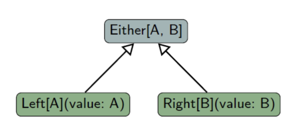 Either[A, B]는 타입 A나 타입 B를 가질 수 있는 것- 정확히는