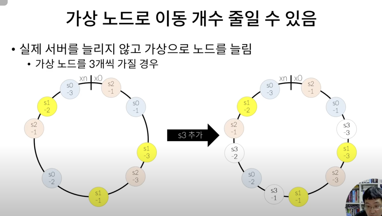 - 서버가 추가되거나 삭제될 때 재배치되는 키의 수가 최소화