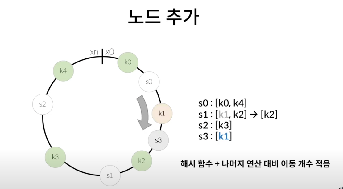 - 서버 갯수가 변동되면, 많은 데이터의 저장 서버 위치가 재배치되어야 함