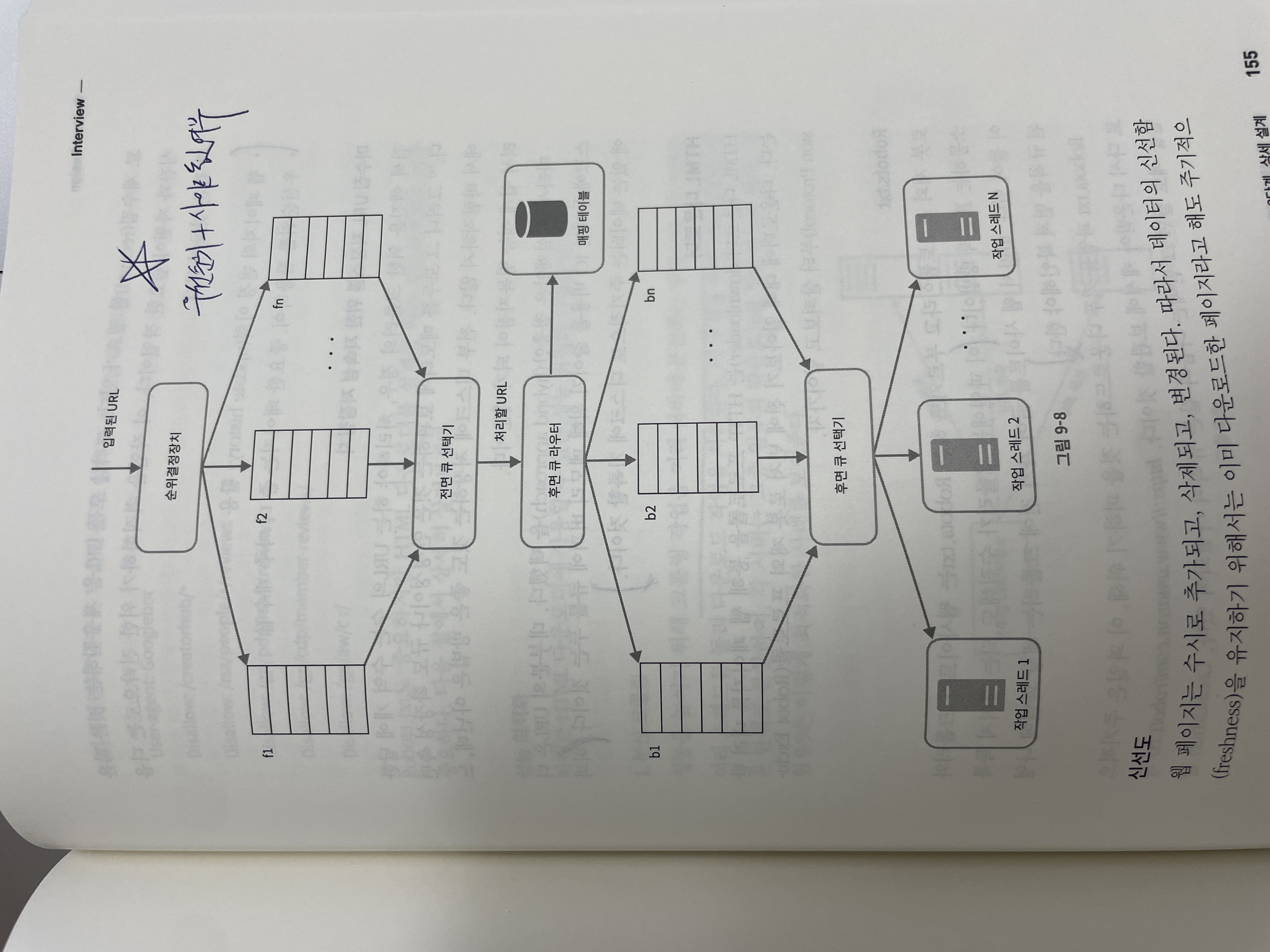 - 초당 수천건의 페이지 요청 웹사이트에 보내 마비하면 안돼. 따라서 순위 결정 장치 + 큐 라우터를 사용하여 탐색 순서를 조정하자