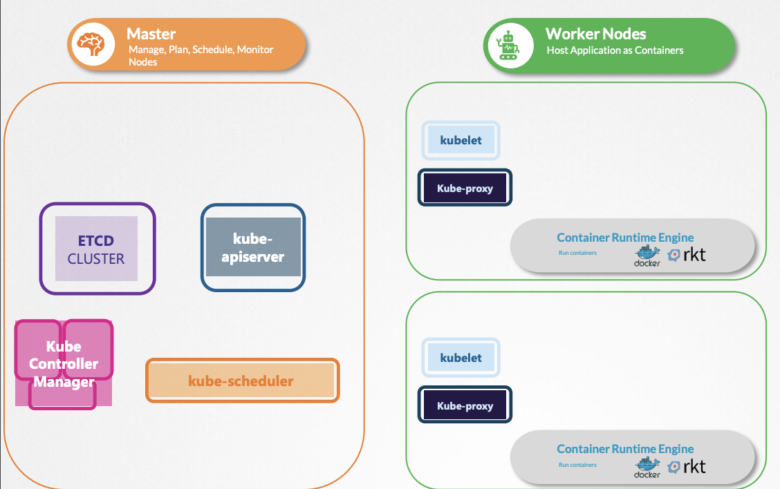 - 모든 노드에서는 docker, rkt 등 컨테이너 엔진이 필요